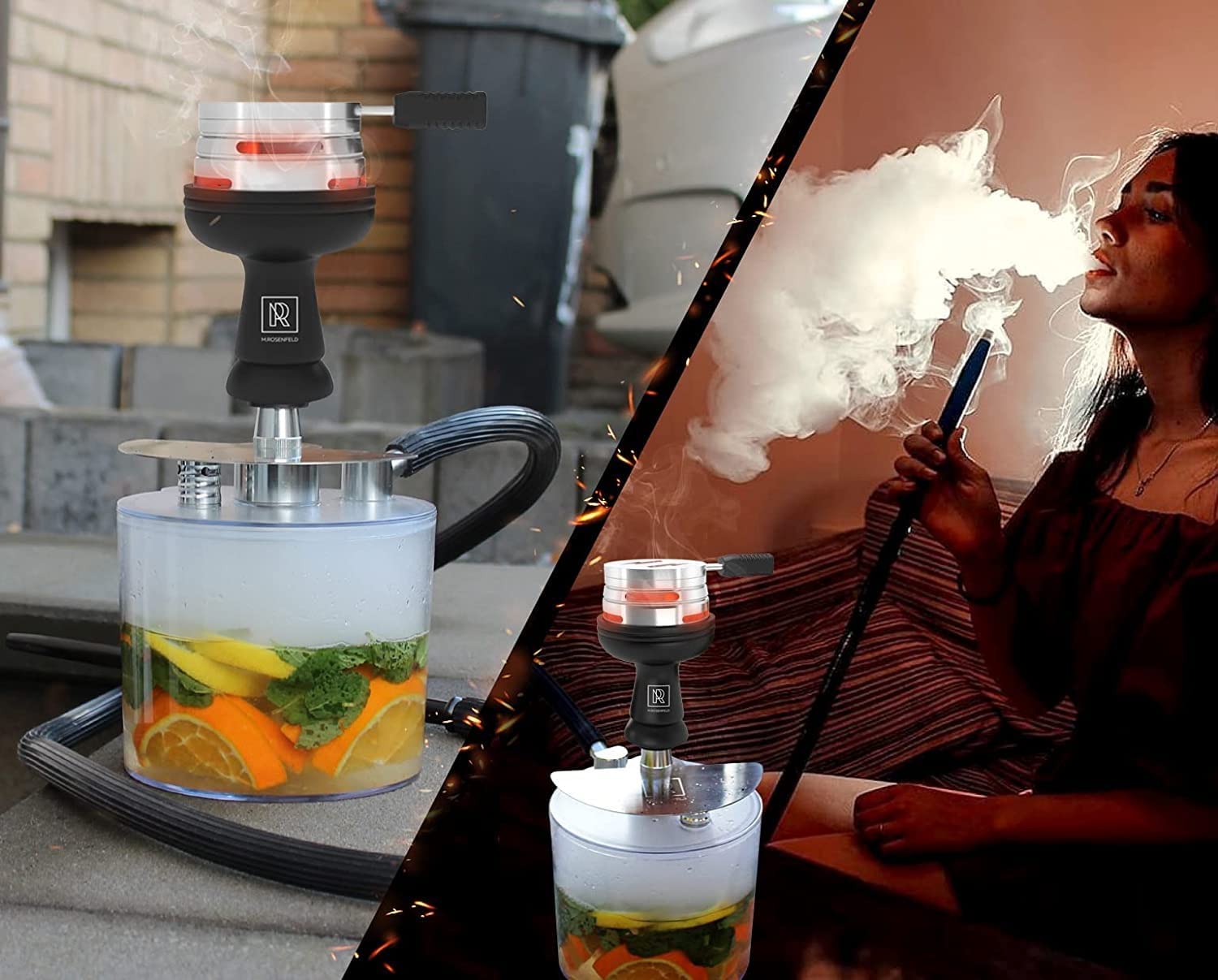 Die Wasserpfeife macht einen sehr stylischen, ersten Eindruck. Auch wirkt sie edel und qualitativ hochwertig, was sich unter näherer Betrachtung der ausgewählten Materialien und deren Verarbeitung bestätigt. Anders als bei anderen Wasserpfeifen besteht der Wasserbehälter aus hochwertigem Acryl. Der Tabakkopf besteht aus Soft-Touch-Silikon. Je nach Präferenz kann aber auch ein Tonkopf auf die Wasserpfeife montiert werden. Hierfür gibt es im Komplettset ebenfalls einen extra Gummiaufsatz.